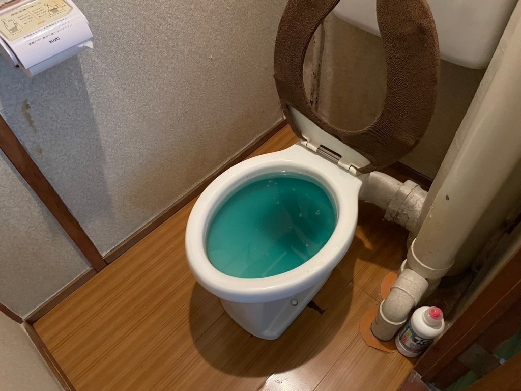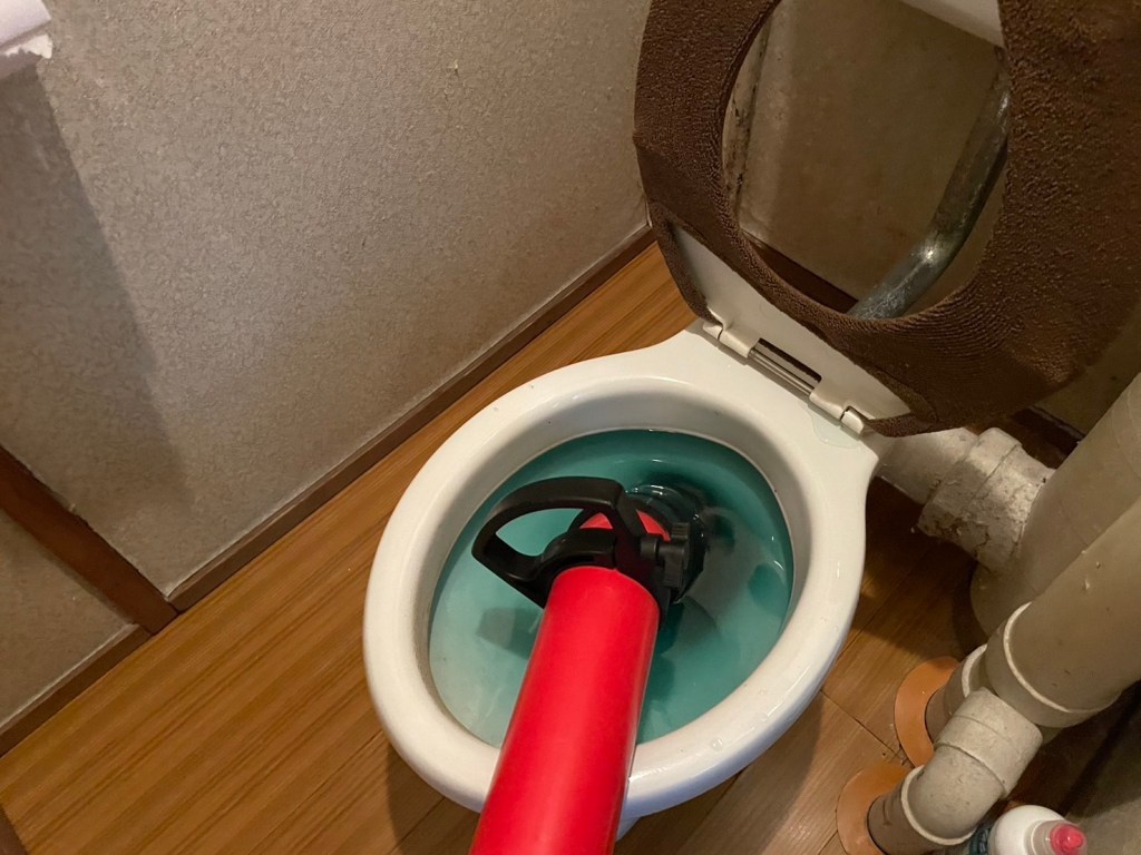 現場に到着しお話を聞くと別業者に依頼したが"トイレを外さないと抜けない"と言われたが威圧的で怖かったので地域密着のジントク水道にご依頼が来た流れになります。