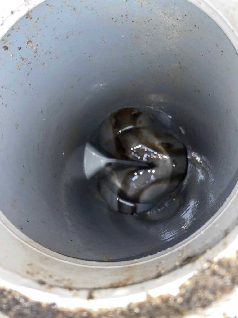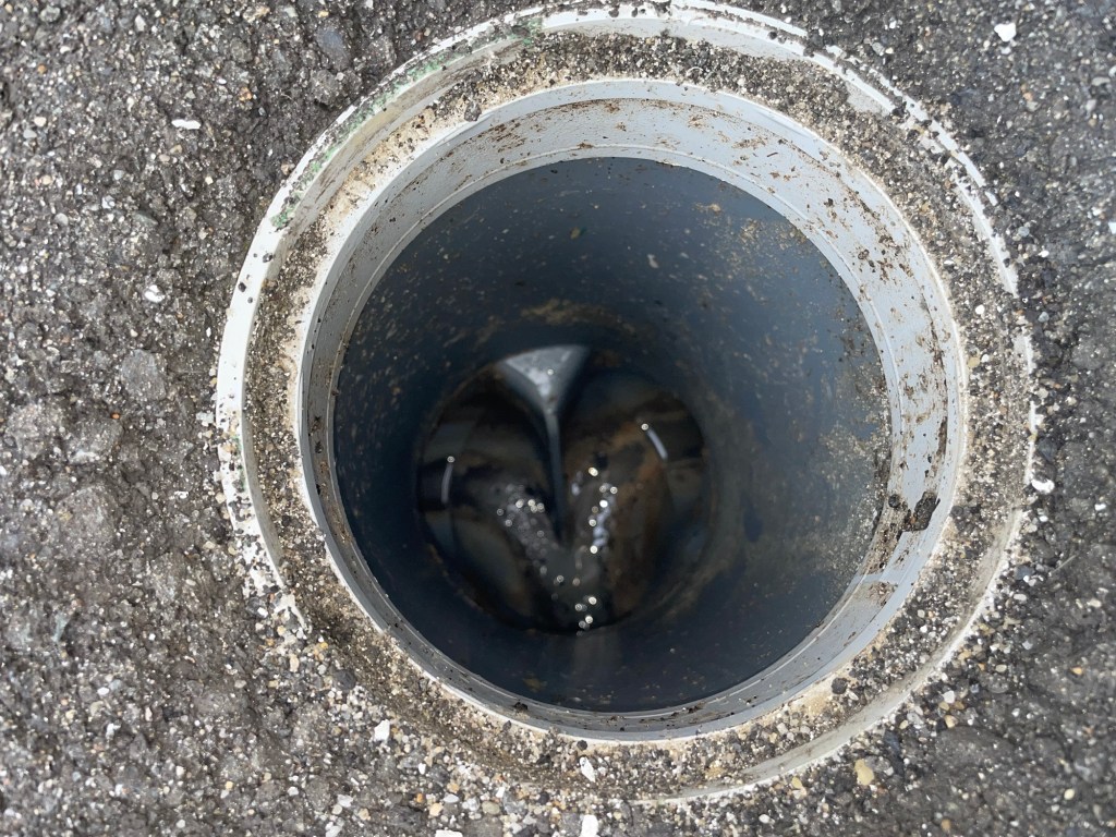 過去に汚水がつまり道路に汚水が大量に流れた現場になります。地盤沈下か排水の勾配も取れていない箇所があり流れが悪いです。