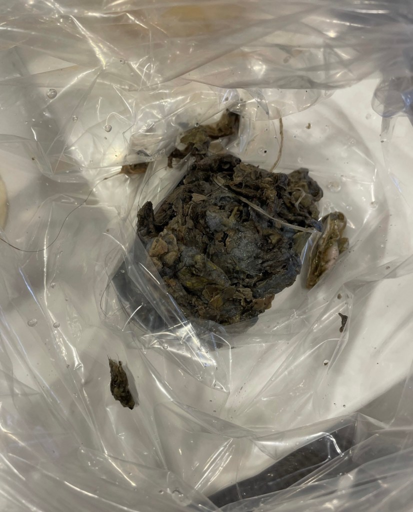 今回は②のトラップに衣類の糸くずが大量に詰まっていました。