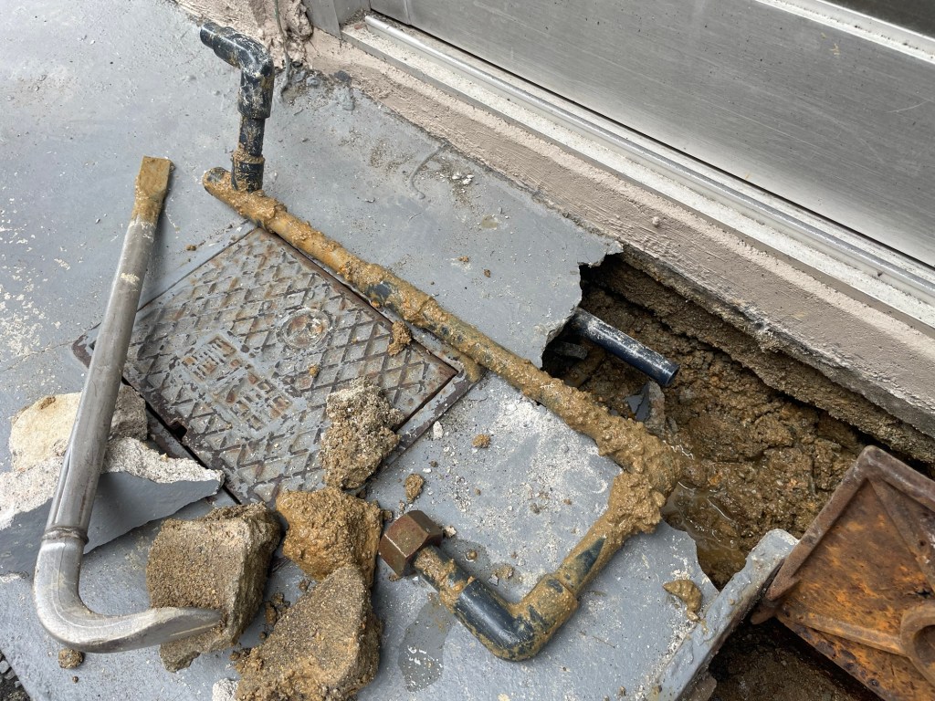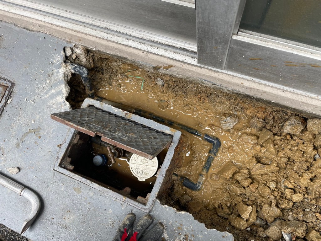 給水管を一部切替し通水テスト。無事パイロットは止まり漏水修理完了となりました。