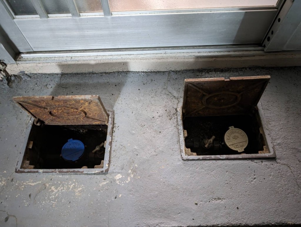 寝屋川市にて"水道検針員の方に水が漏れている"と言われたから見てほしいと文化住宅のオーナー様からご依頼いただきました。