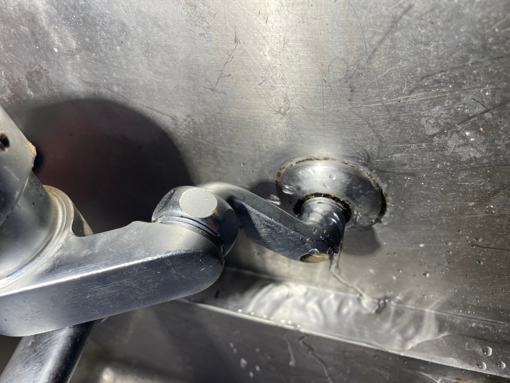 吹田市朝日町の某有名ファーストフード店の店舗管理者様から"店舗シンクの蛇口の付け根から水が漏れて止まらない"とお問い合わせ頂きました。