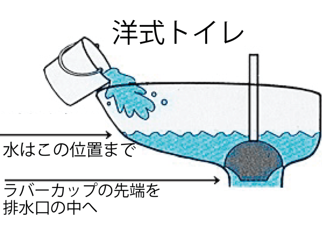 また継ぎ足しした水が減らない場合はまだトイレが詰まっている恐れがありますので再度ラバーカップで引くを意識し何回か繰り返してみてください。