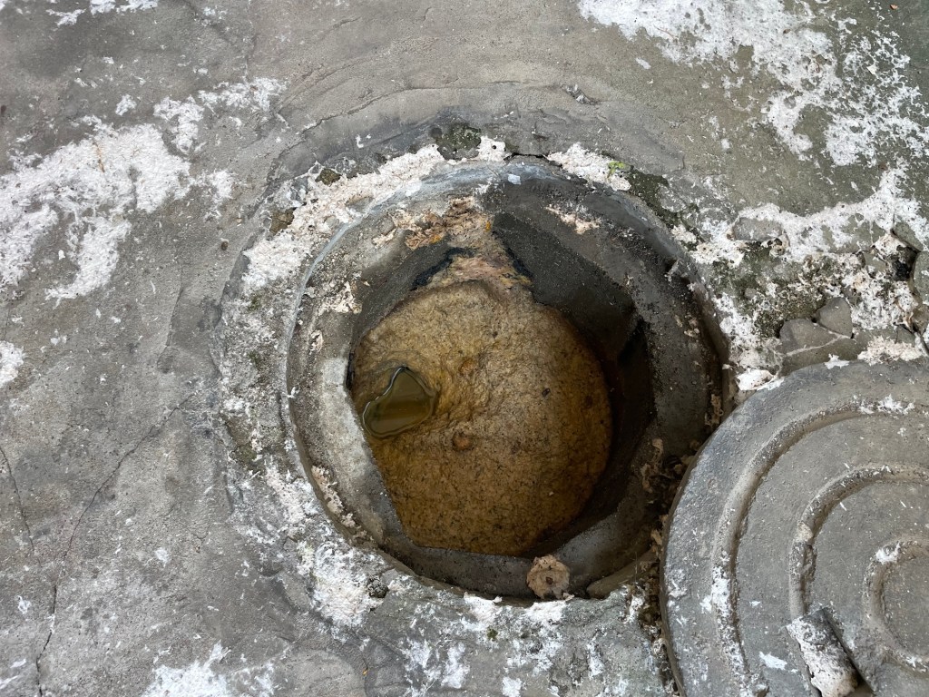 詰まりの原因としましてはコンクリートで作られたマスの底が落ちて排水管と間に段ができた事により引っかかり部が出来てしまい汚物とペーパーが引っ掛かりうまく流れない事により詰まってしまう状況でした。