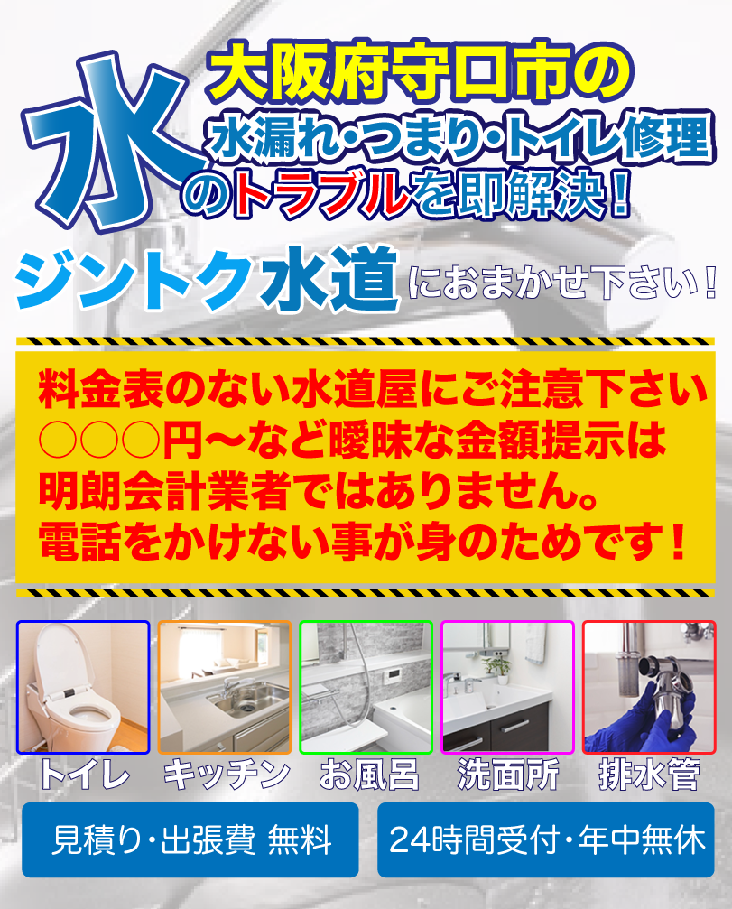 守口市内は出張料金・お見積り・休日・深夜割増料金すべて無料です。
